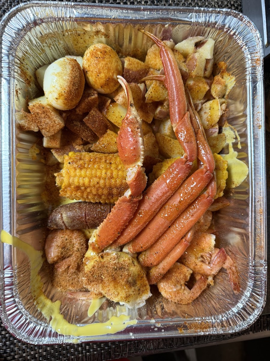 Delicious and juicy crabs. All of the crabs were perfectly steamed so the flesh was soft and moist. Butter and seasoning were mild and not overpowering which went very well with the flavor of the crabs. Corn and potatoes were perfectly cooked and sweet. We also ordered a tray of mussels, which was not on the menu. Mussels were very flavorful, meaty, yet soft. I was only visiting Daytona for vacation, but i will definitely return to Fresh Box on my next visit. The store is take-out only and does not have seating.